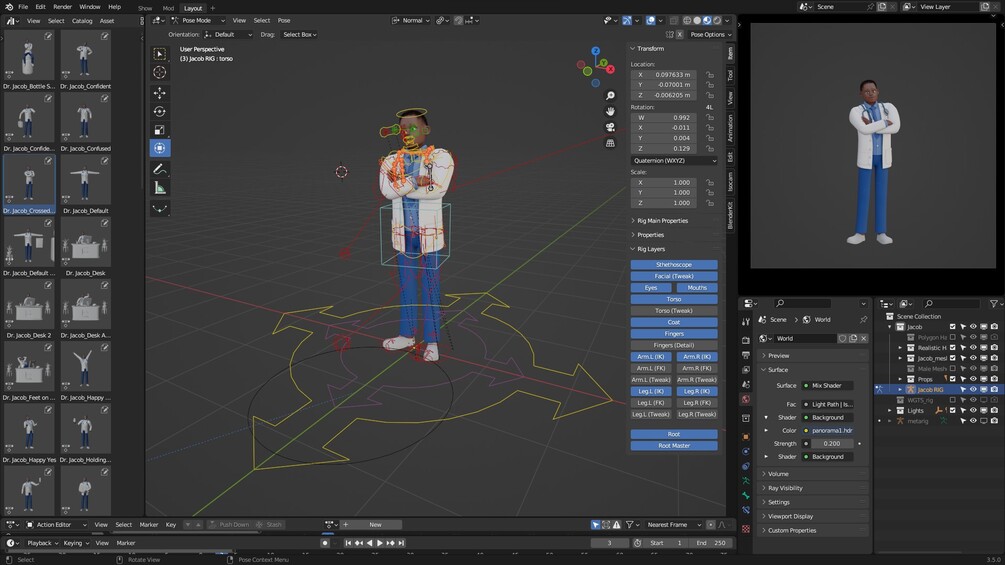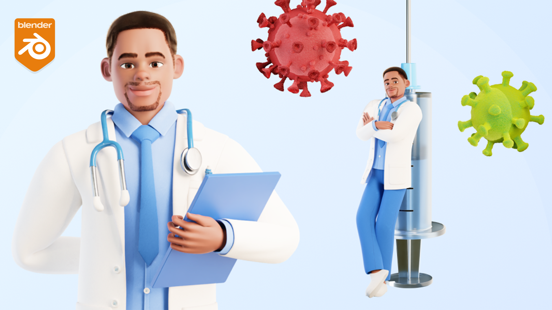 Black Doctor Man Character in Disney / Pixar Style made in Blender 3.5.1 Light setup in Cycles & EEVEE. Ready for your Personal Websites, Movies, TV, advertising, etc.