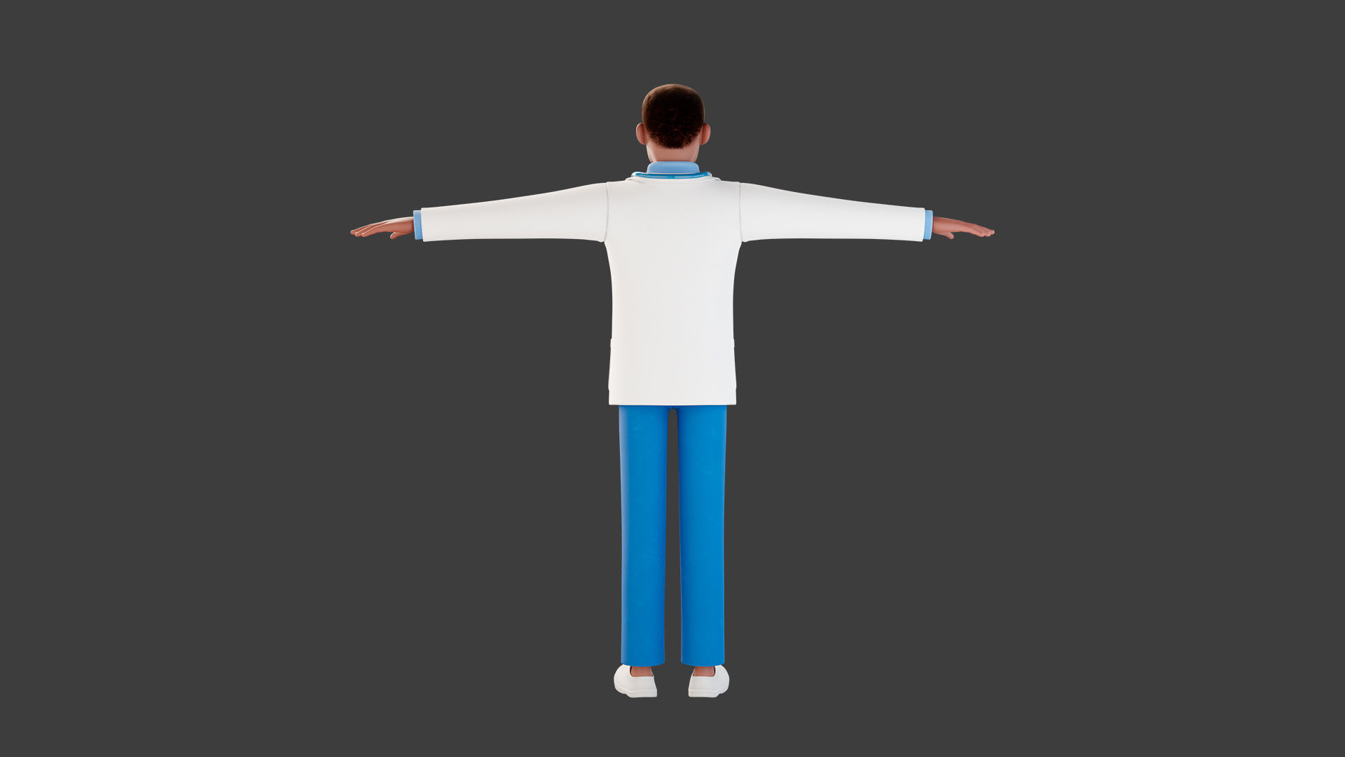Full version of Black Doctor Man Character Rigged - 3D model. Blender file, FBX, OBJ, GLB and PNG files.