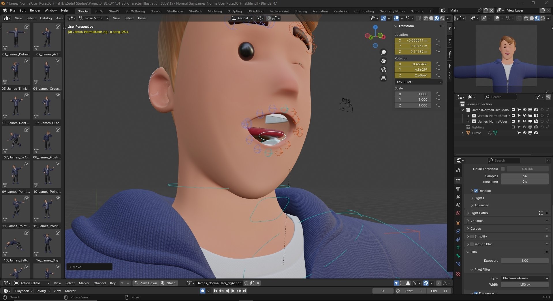 Cartoon Illustration Man Character made in Blender 4.1.1 Light setup in Cycles & EEVEE. Ready for your Personal Websites, Movies, TV, advertising, etc.