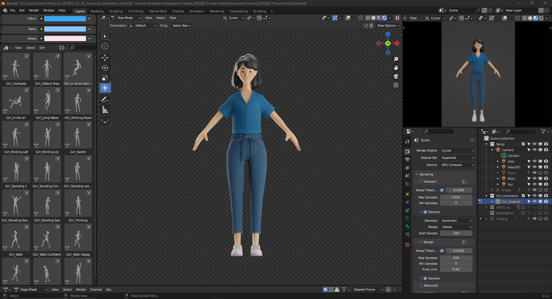 - Cartoon Woman Illustration Style Rigged in Disney / Pixar Style made in Blender 4.1.1