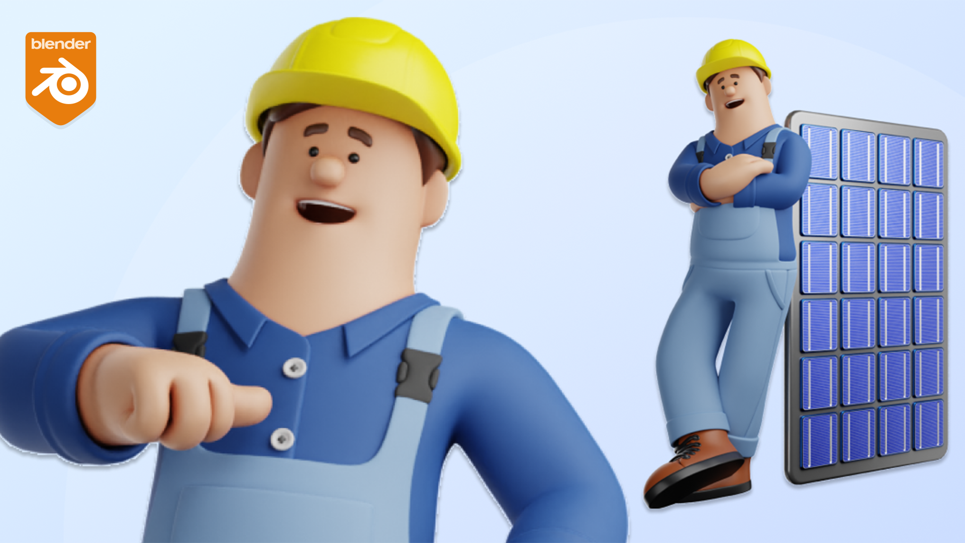 - Cartoon Worker Man Rigged- Solar Power Installer Pack in Disney / Pixar Style made in Blender 4.1.1