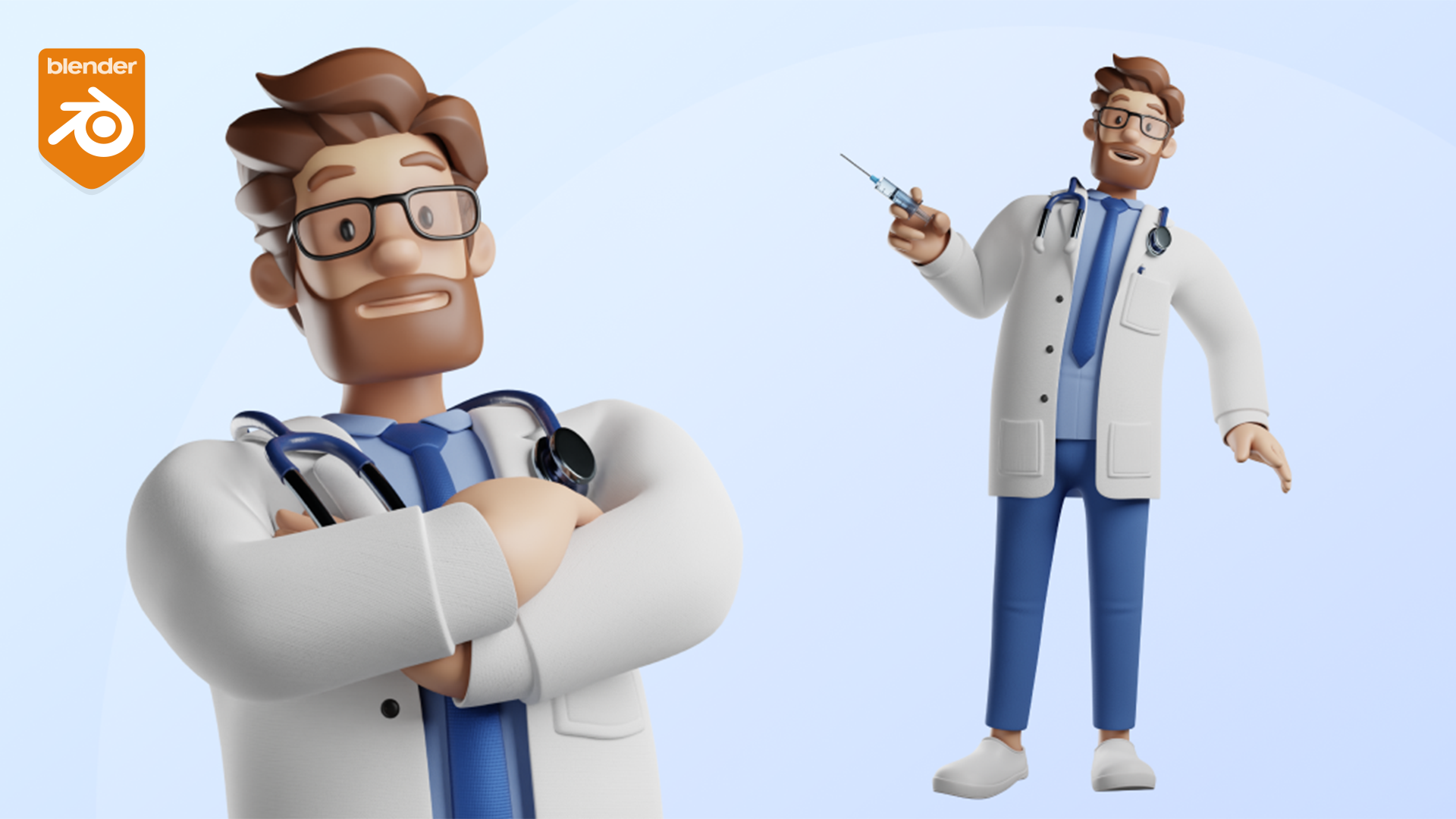 - Doctor Cartoon Male Character Illustration in Disney / Pixar Style made in Blender 4.1.1