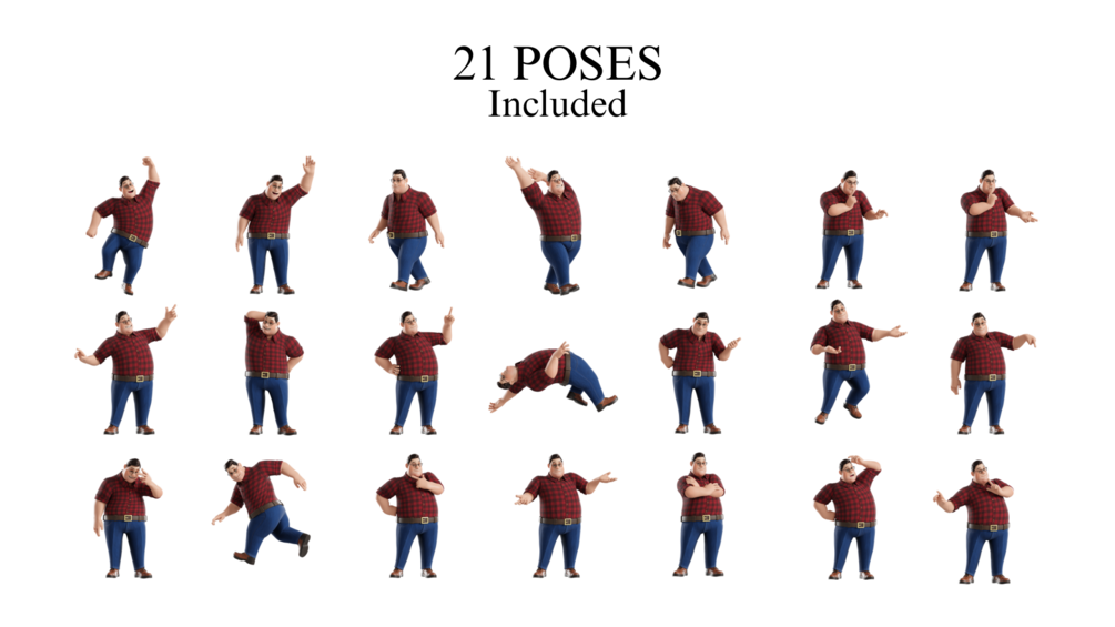 Full version of Fat character - 3D model. Blender file, FBX, OBJ, GLB and PNG files.