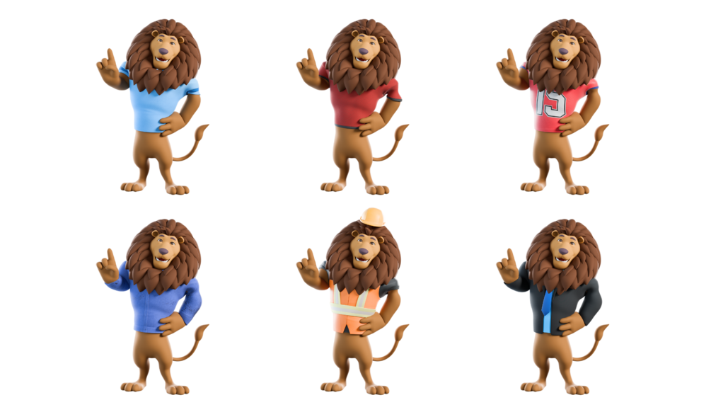 Cartoon Lion Mascot Rigged in Blender 4.0+, light setup in EEVEE and CYCLES. Ready for your Movies, TV, advertising, etc.
