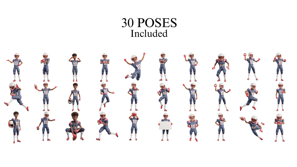 Full version of Cartoon NFL Football Player Man - 3D model. Blender file, FBX, OBJ, GLB and PNG files.