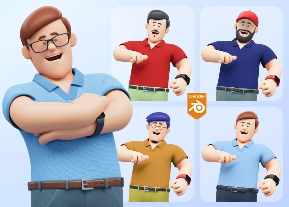 - Customizable Cartoon Office Illustration Character in Disney / Pixar Style made in Blender 4.1.1