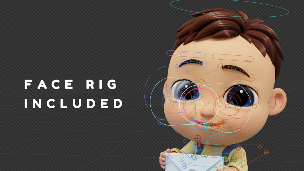 Cartoon Baby Boy Rigged in Blender, light setup in EEVEE and CYCLES. Ready for your Movies, TV, advertising, etc.