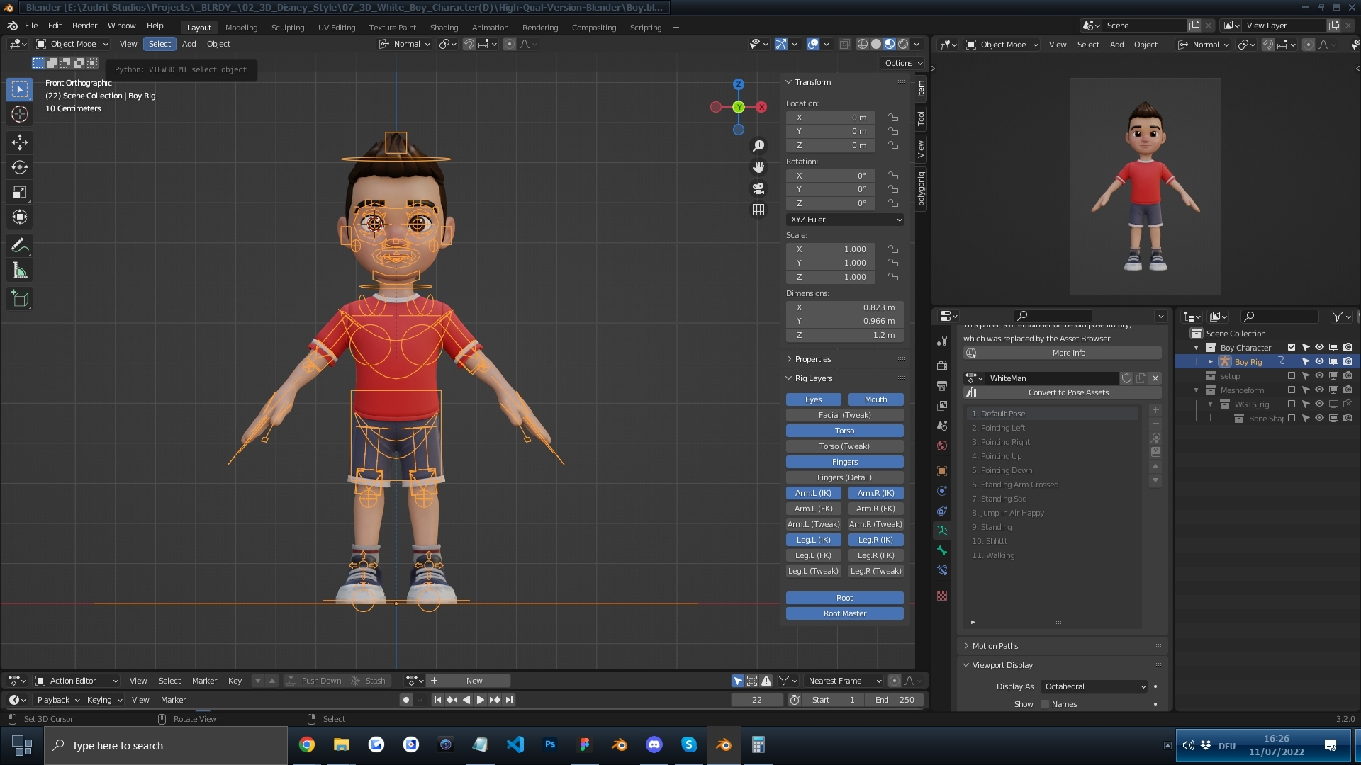 Cartoon White Boy Rigged in Blender 3.0.0,3.1.0,3.2.0... Ready for your Movies, TV, advertising, etc.