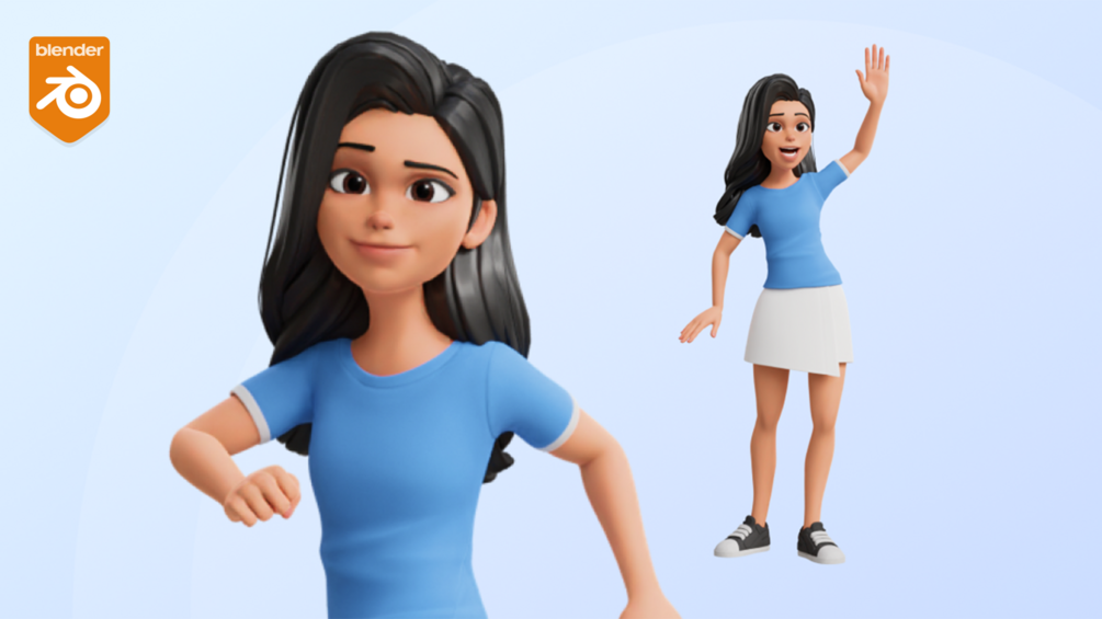 - Cartoon White Women Teen in Disney / Pixar Style made in Blender 4.1.1