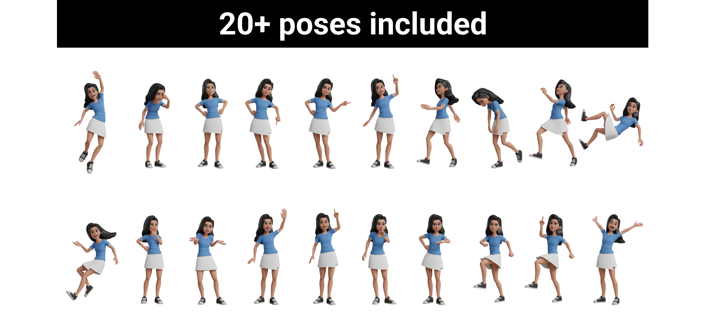 - 20+ premade poses in Action Library
