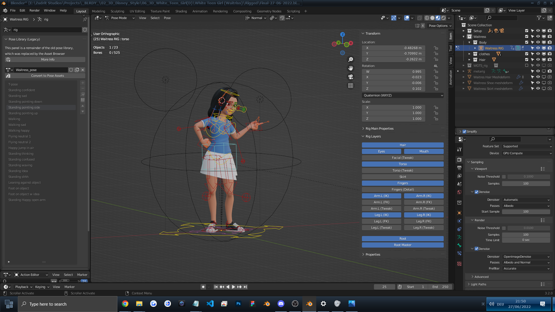 Cartoon White Woman Teen Girl Rigged in Blender 3.0.0,3.1.0,3.2.0... Ready for your Movies, TV, advertising, etc.